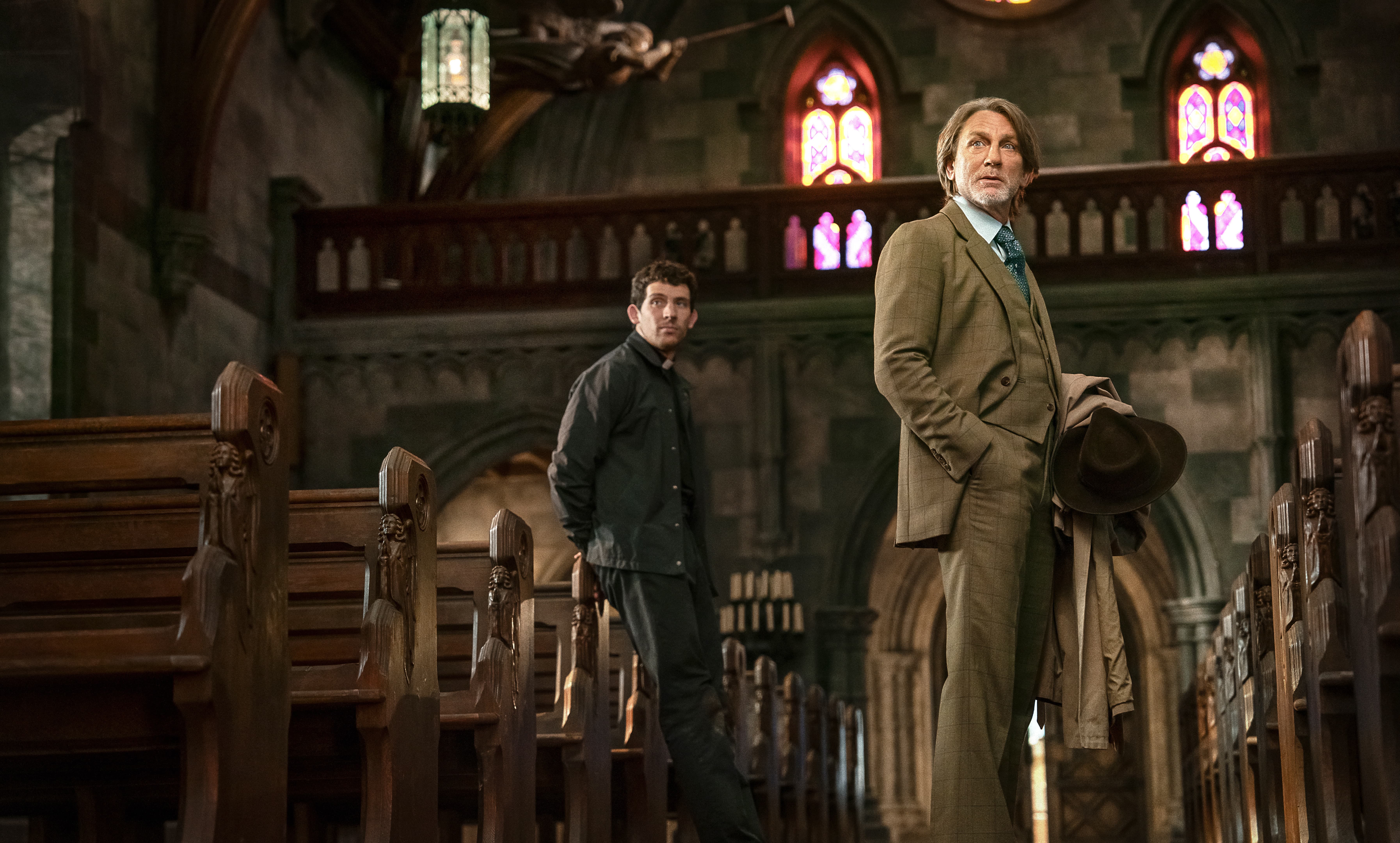 Det bliver selvfølgelig anledning for, at Daniel Craigs mesterdetektiv Benoit Blanc ankommer og ser pastoren og den spraglede menighed efter i sømmene på lige dele spændende og underholdende vis.