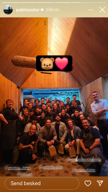 Onsdag aften delte Pablo Soto, der er restaurantens chefkok, et billede fra ‘The Bear’-holdets besøg. Skuespillerne var blandt andet i selskab med seriens producere Cooper Wehde og Courtney Storer.