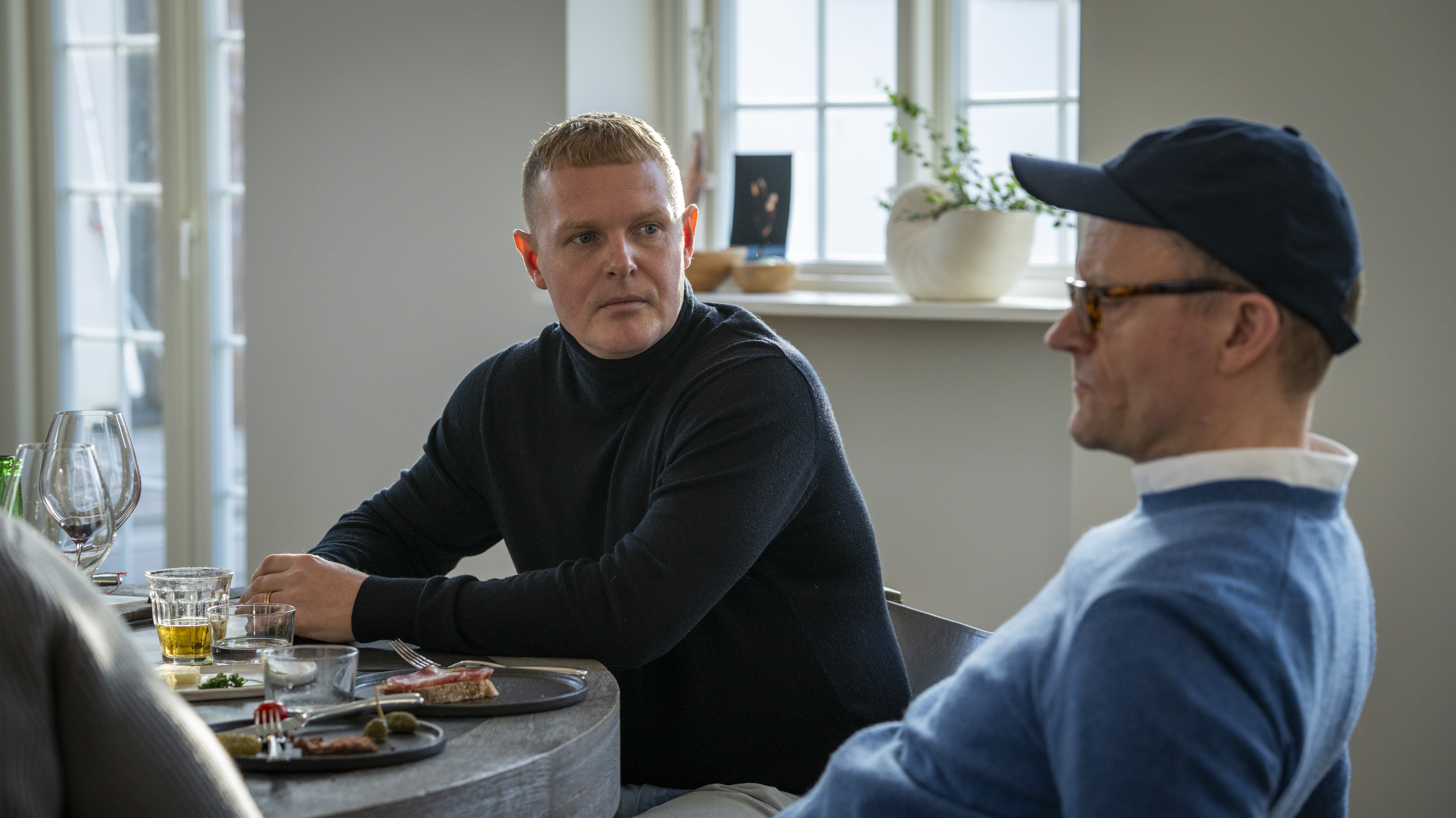 Frank: »Vi prøvede at gøre det på en måde, der ikke låser os for meget, for det er helt sikkert et nyt element. Vi har det her filmprojekt ude på Nordisk Film, som vi genbesøger flere gange i løbet af sæsonen, og der er også Frank og Mias ægteskabelige krise«.