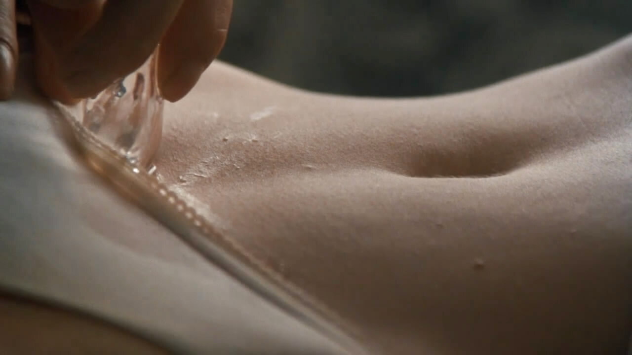 Den hedeste scene er nok den, hvor John kører en isterning ned over Elizabeths mave og langs hendes trussekant, mens hun har et hvidt silketørklæde for øjnene. Vi ser en iskold dråbe vand, der tøver et splitsekund, inden den triller ned i hendes navle.