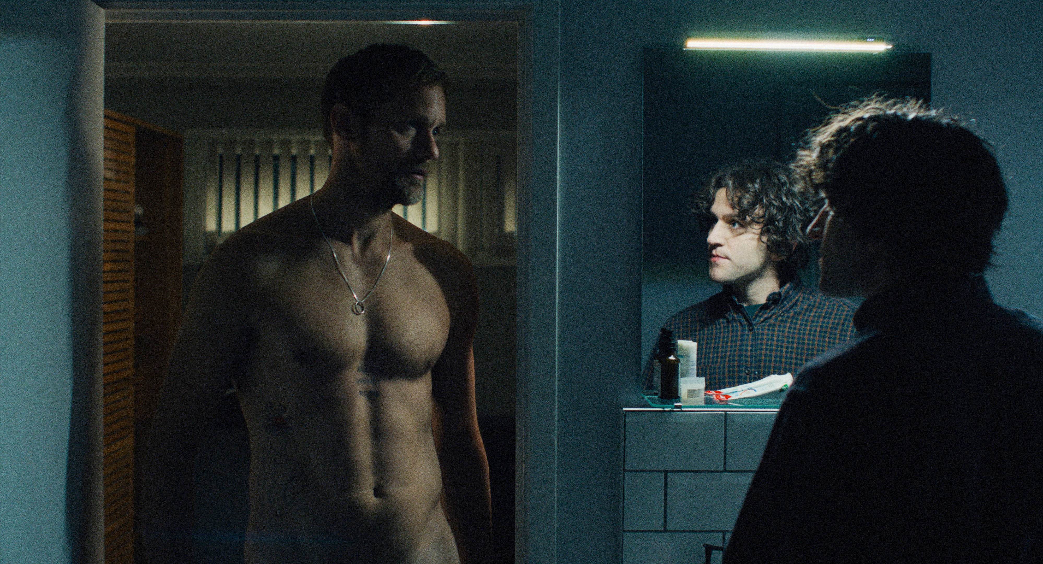 Alt ændrer sig nemlig juleaften på den lokale pub, hvor den vandkæmmede Colin, syngende i sit bolsjeoutfit, falder pladask for den enigmatiske biker Ray, der i skikkelse af Skarsgård tager sig ud som en græsk gud mellem Bromleys chipspose-befolkning.