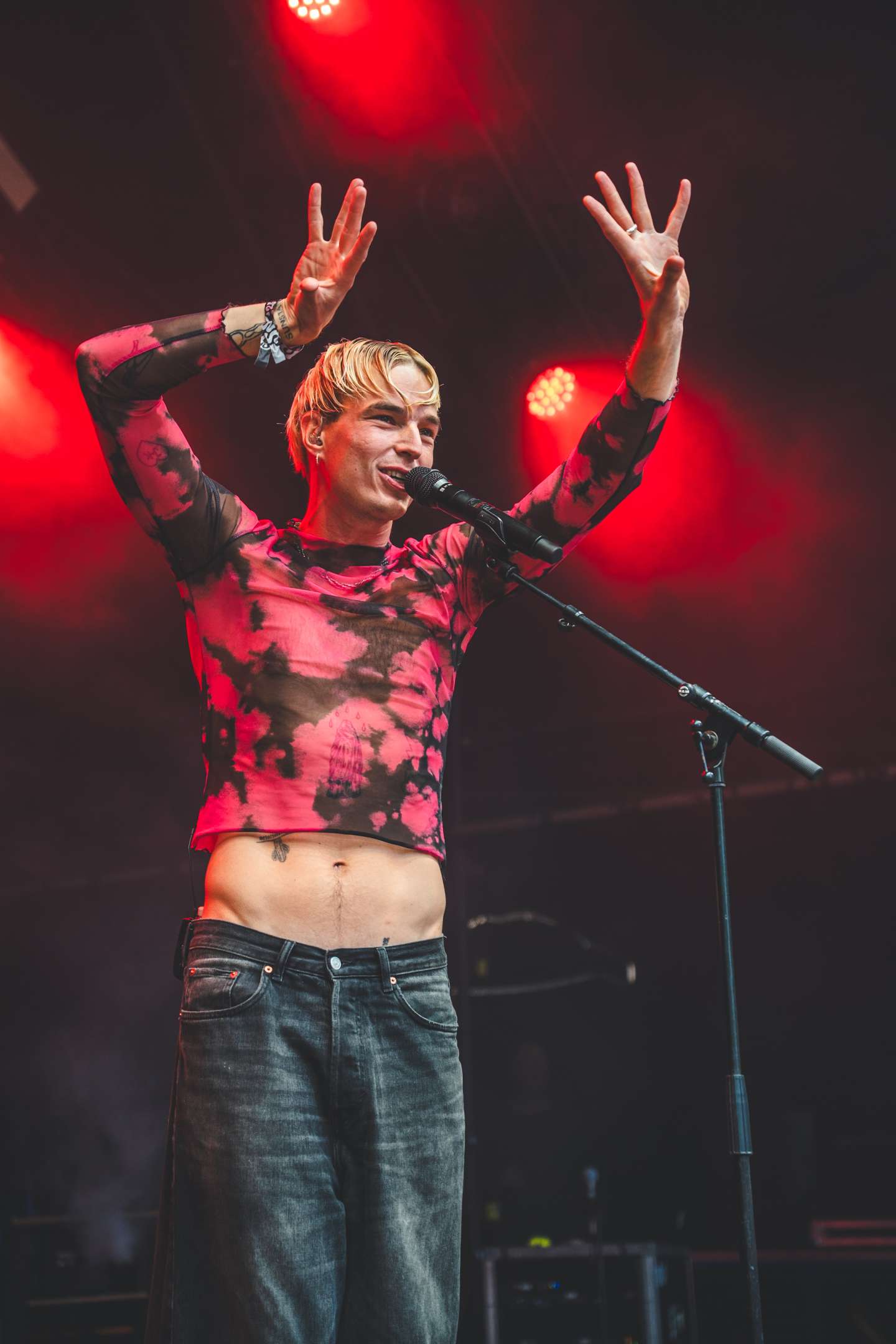 Iklædt sin lidt for stramme og lidt for korte sort-røde trøje slangede Jessen sig rundt på scenen i en tiltagende større radius. Langsomt indtog frontmanden hele scenearealet, bid for bid.