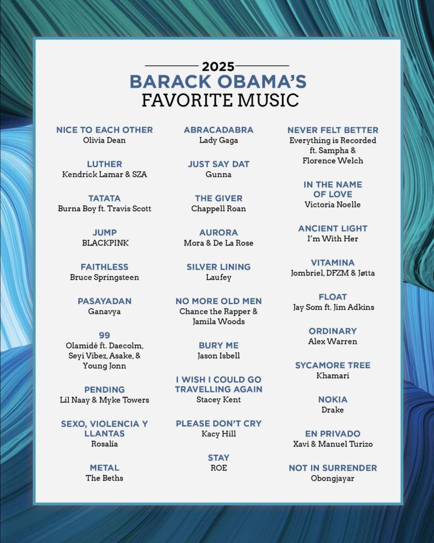 I et opslag på X har den amerikanske ekspræsident vanen tro delt sine favoritsange fra 2025, som tæller 30 styk og spænder over flere genrer.