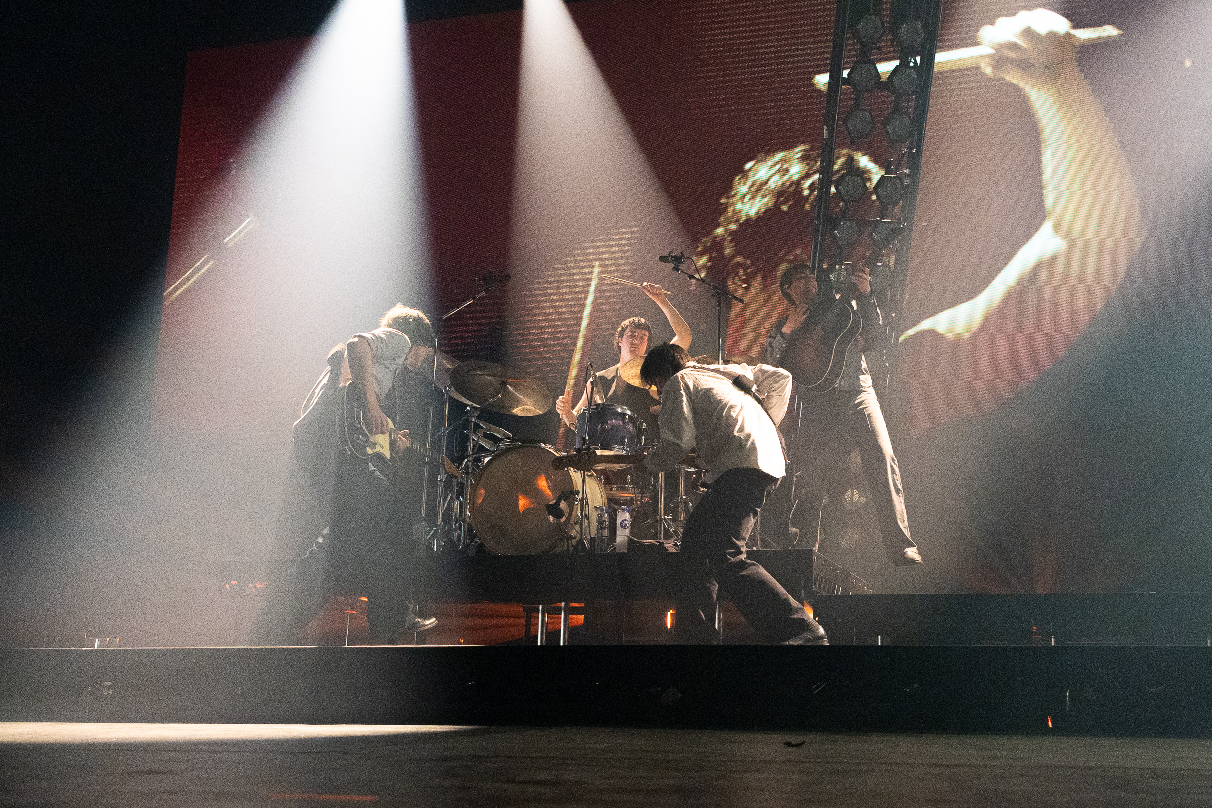 En spontan fødselsdagsfest var der også plads til, da flere blandt publikum tog flag frem for at fejre trommeslager Noah Elias Rasmussen, der altså fyldte år. Overraskende, medmenneskeligt, men måske også lidt for hyggeligt.